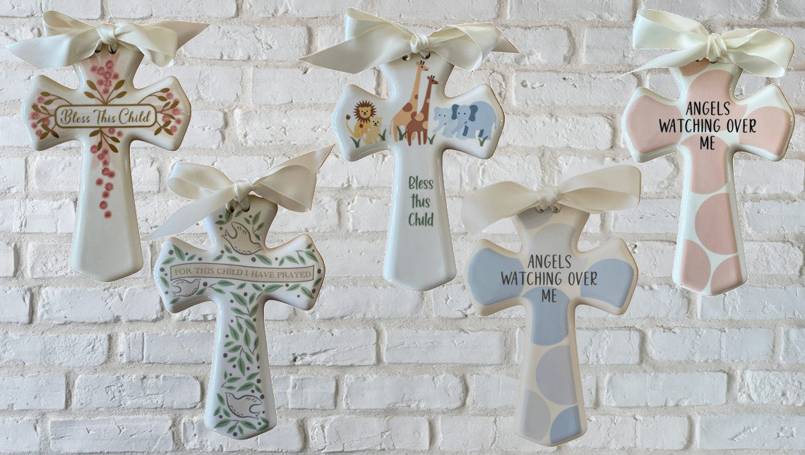 Thank you for your interest in our exclusive collection of contemporary ceramic crosses. Each ivory colored piece features a clean, artful design complemented by an inspirational message, making them perfect gifts for occasions such as baby showers, baptisms, christenings, and other religious holidays. Additionally, they serve as meaningful decorative elements for children’s spaces and nurseries. Offering wholesale pricing, each individual cross is sold in packs of six. We are delighted to partner with you and support your retail business with our unique creations.